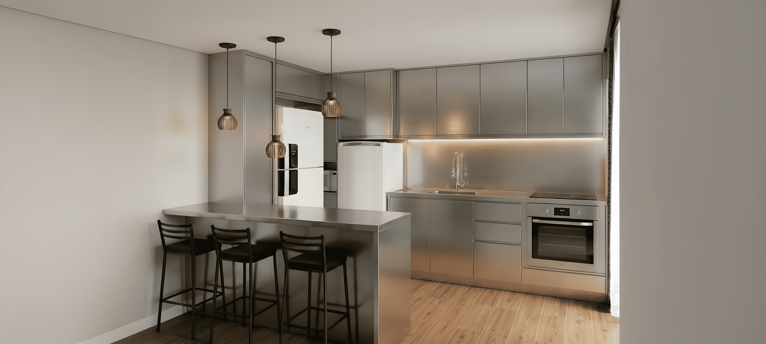 Projetos sob medida em aço inox 304 para cozinhas, áreas gourmet e ambientes profissionais.